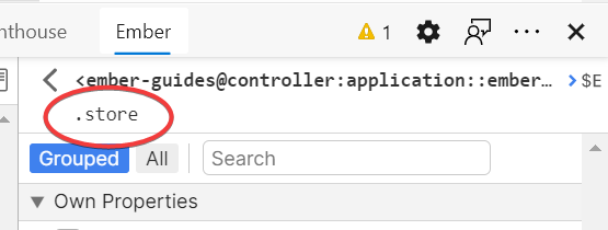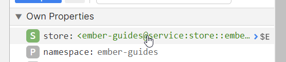 In addition to inspecting the properties above, you can inspect properties that hold Ember objects or arrays. Click on the property's value to inspect it.